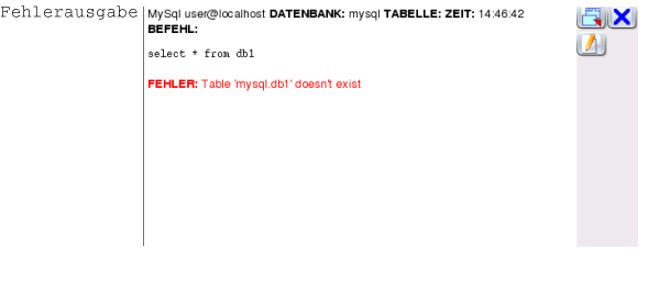 Dieses Texteingabefeld dient zum Absetzen von SQL-Befehlen. Der Prompt zeigt dabei die Verbindung sowie die Datenbank an, an die der Befehl geschickt wird. Über die Navigationsleiste kann beides geändert werden.